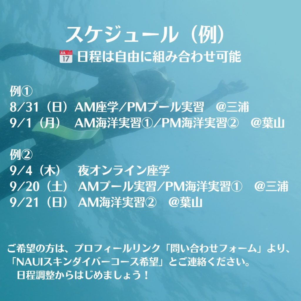 ✨ 受講希望は問い合わせフォームより、「NAUIスキンダイバーコース希望」とご連絡ください。